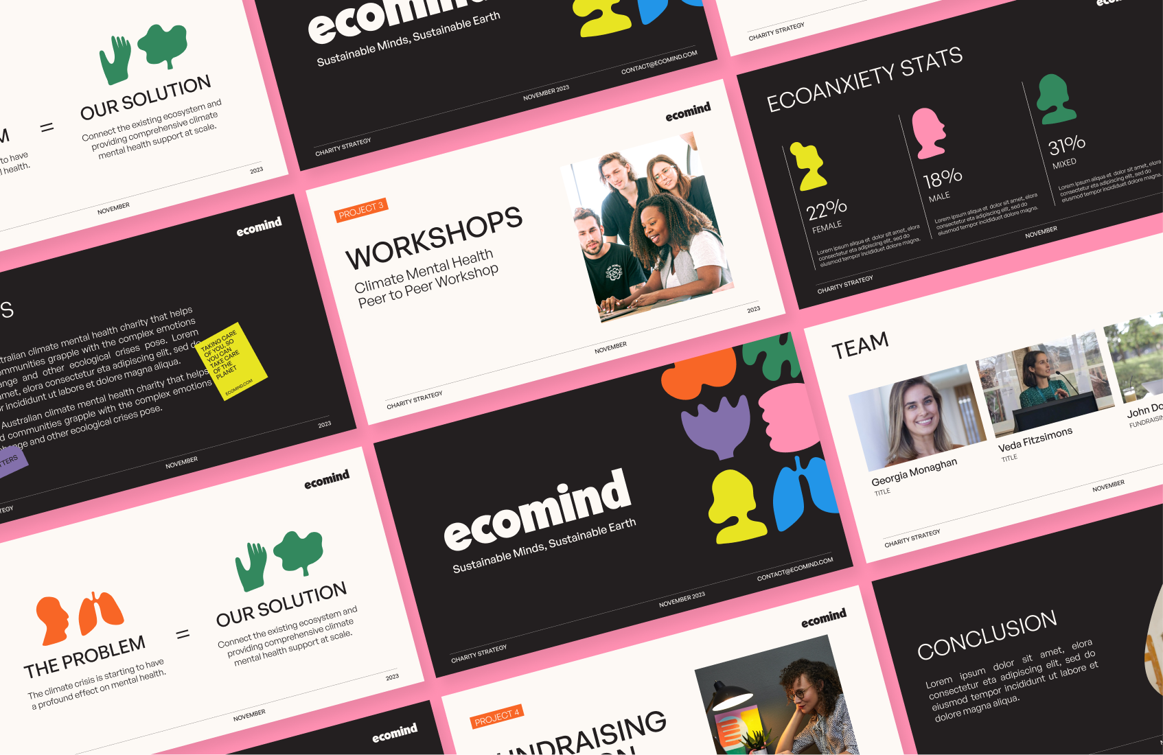 EcoMind helps turn climate emotions into climate action by helping young Australians build emotional resilience in the face of the planetary crisis. We worked with the EcoMind founders to translate their vision and strategy into a visual identity and website.